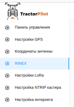 Чтобы начать запись RINEX файлов выберите пункт RINEX в левом меню