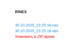 Далее для удобства скачивания нажмите "Упаковать в ZIP архив" и скачайте получившийся архив с RINEX файлами.